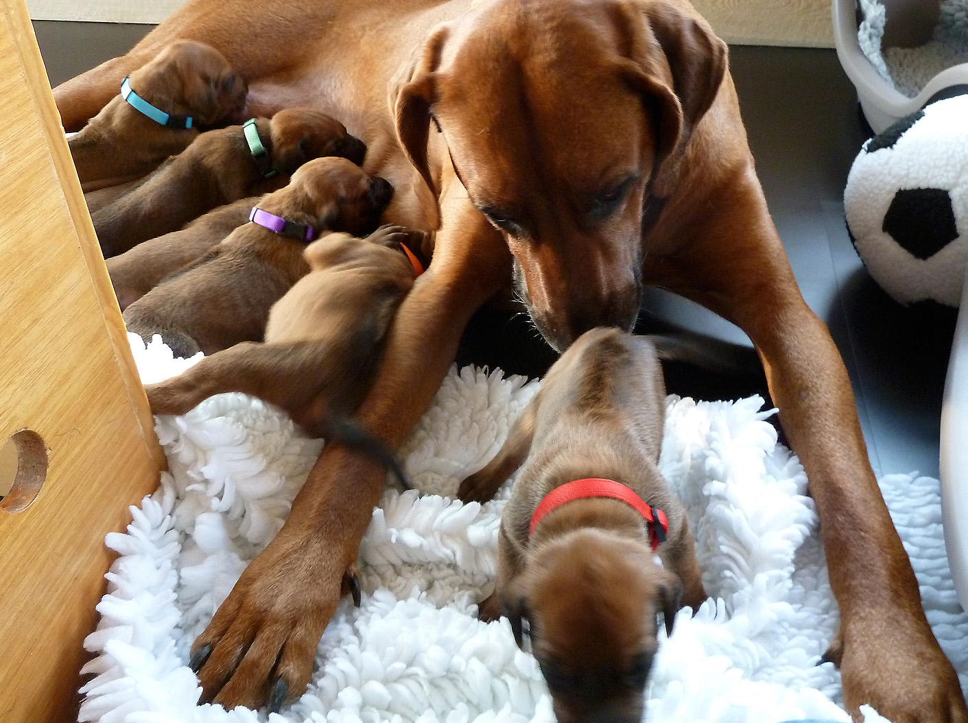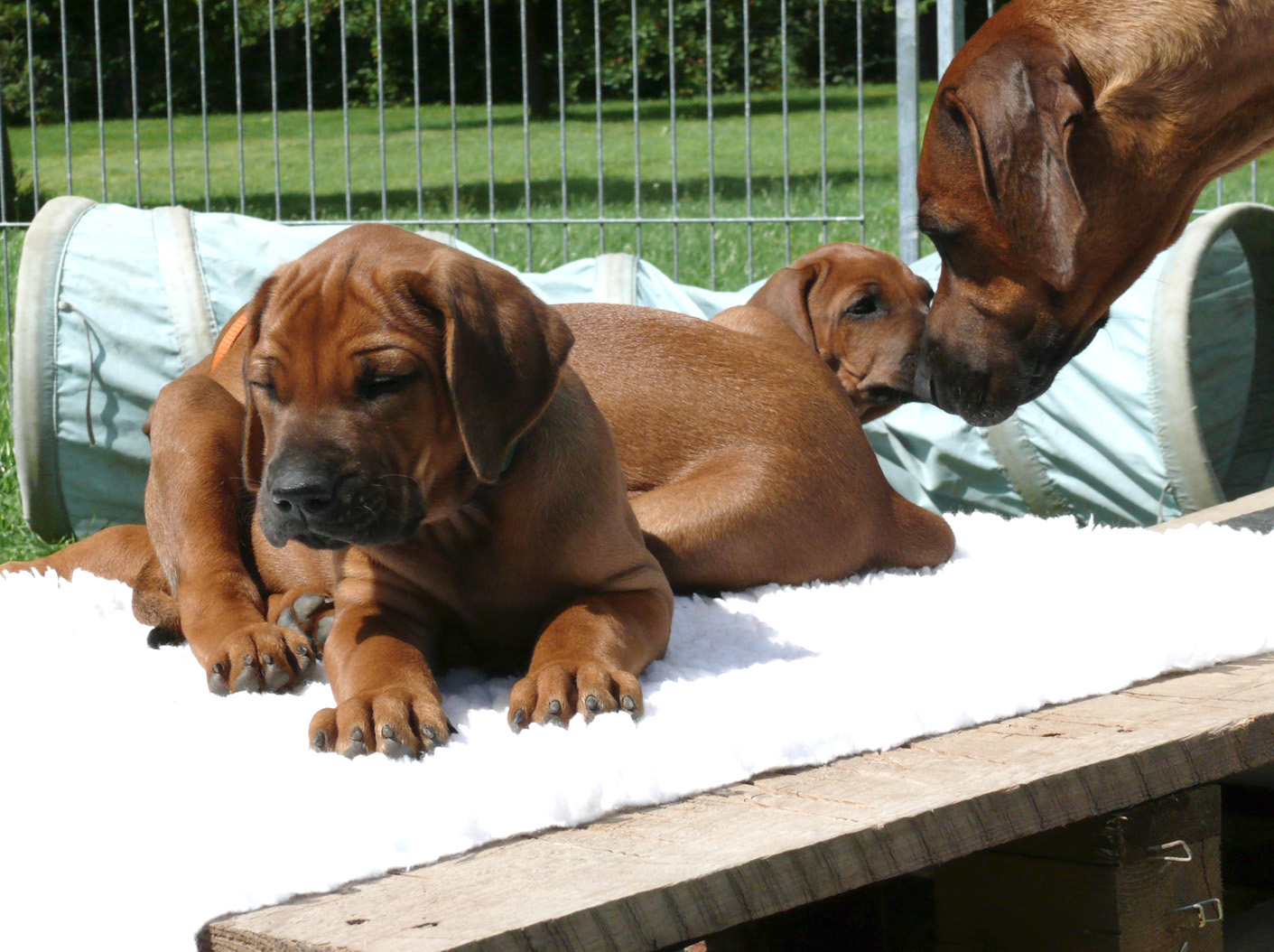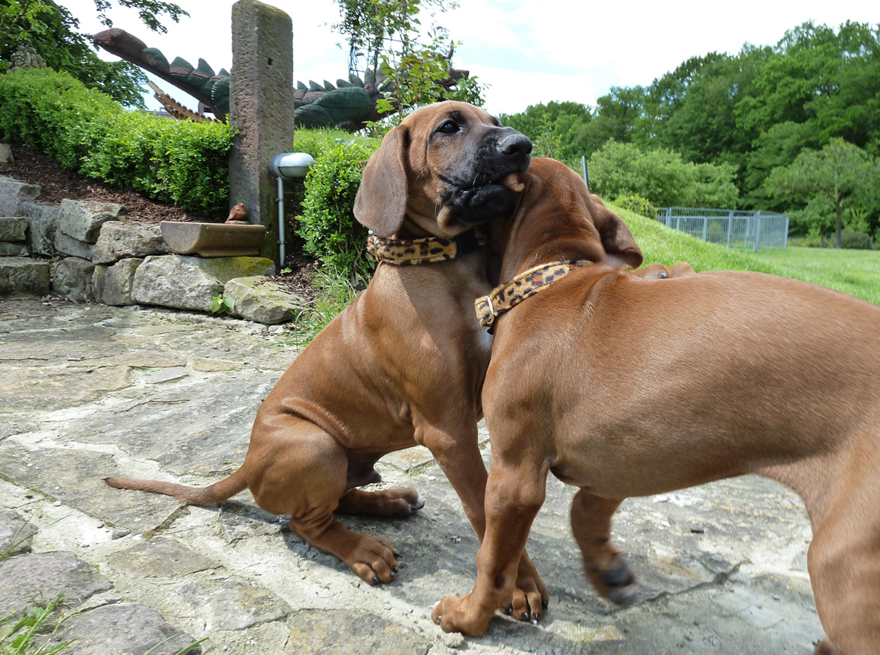 Natürlich werden die Welpen aus unserer Zucht regelmäßig entwurmt sowie vor ihrer Abgabe von einem Tierarzt gründlich untersucht, erhalten eine IHV-Ahnentafel, einen EU-Heimtierausweis, sind geimpft und gechipt. Wenn wir einen Wurf haben, bieten wir unseren Interessenten die Gelegenheit, sich die Zuchtstätte der kleinen Ridgebacks anzusehen. Und selbstverständlich möchten auch wir die möglichen Welpenkäufer kennen lernen. Stellen Sie sich unseren Fragen – zum Wohle ihres späteren Familienmitglieds.