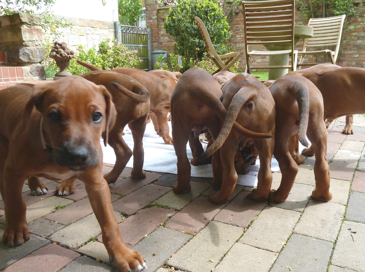 Natürlich werden die Welpen aus unserer Zucht regelmäßig entwurmt sowie vor ihrer Abgabe von einem Tierarzt gründlich untersucht, erhalten eine IHV-Ahnentafel, einen EU-Heimtierausweis, sind geimpft und gechipt. Wenn wir einen Wurf haben, bieten wir unseren Interessenten die Gelegenheit, sich die Zuchtstätte der kleinen Ridgebacks anzusehen. Und selbstverständlich möchten auch wir die möglichen Welpenkäufer kennen lernen. Stellen Sie sich unseren Fragen – zum Wohle ihres späteren Familienmitglieds.